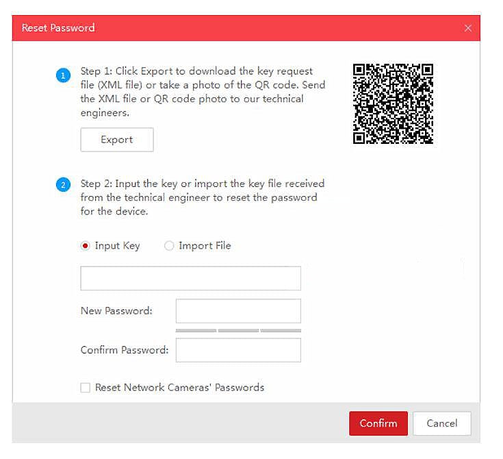 توجه: اگر می خواهید رمز عبور دوربین های خود را به طور همزمان تغییر دهید ، گزینه «Reset Network Cameras’ Passwords» را انتخاب کنید. رمز عبور دوربین ها با NVR یکسان خواهد بود.