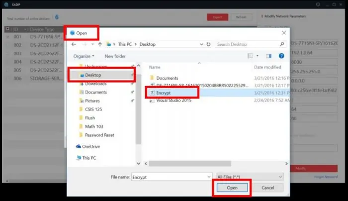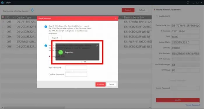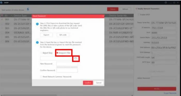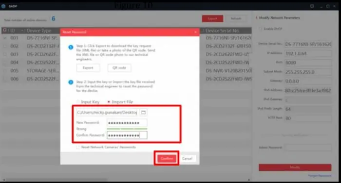 فایل XML روی Desktop ذخیره می شود. آن فایل را به واحد پشتیبانی ارسال کنید(در پایان مقاله راه ارتباط با واحد پشتیبانی موجود می باشد). پس از پر شدن فرم، یک فایل برای شما ارسال می کنیم. این فایل برای تکمیل فرآیند بازیابی پسورد در SADP وارد می کنید :